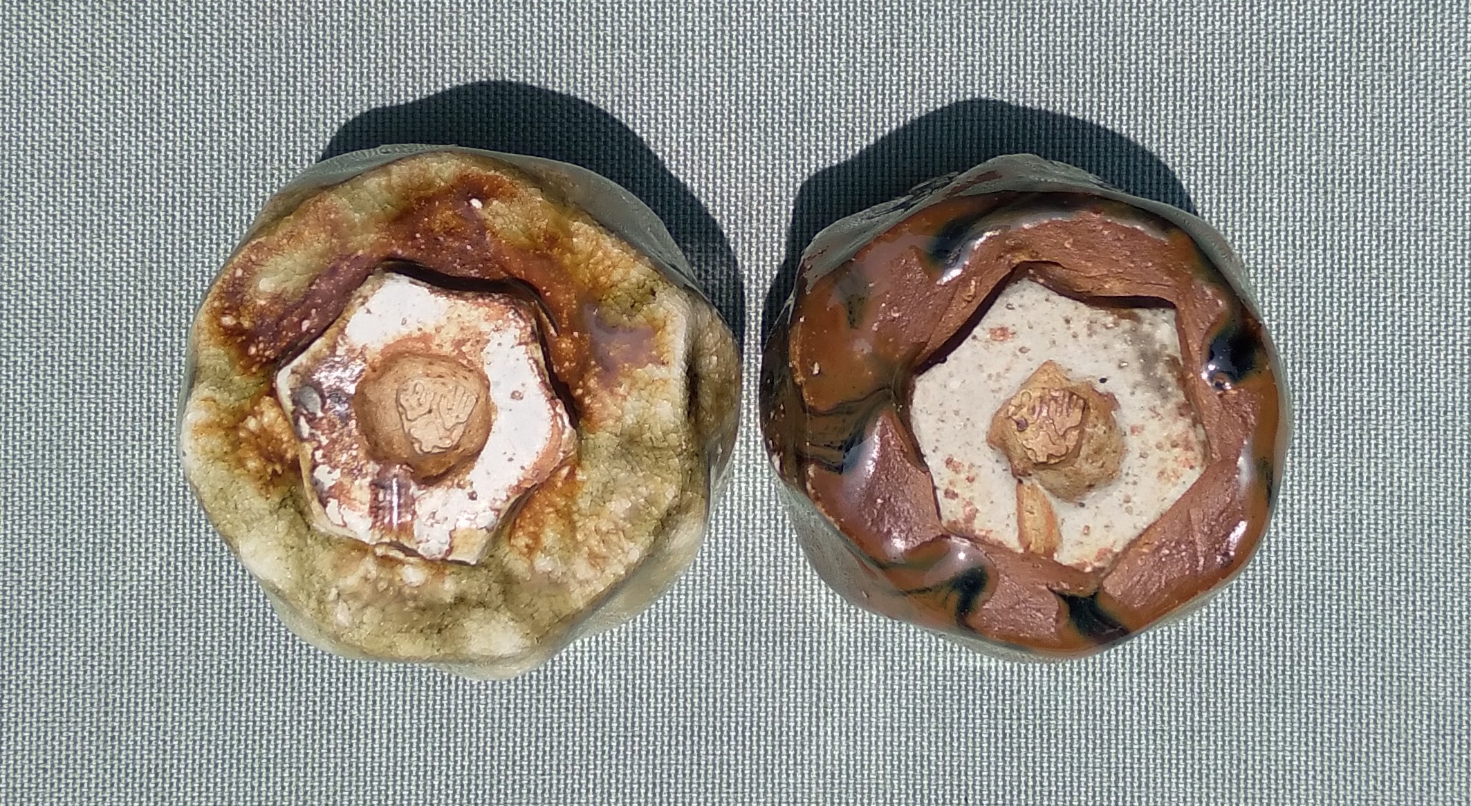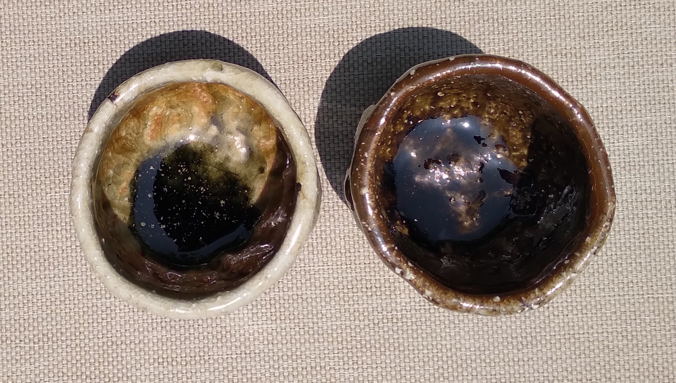 柴燒不上釉的小杯,每個顏色、效果都不一樣喔!